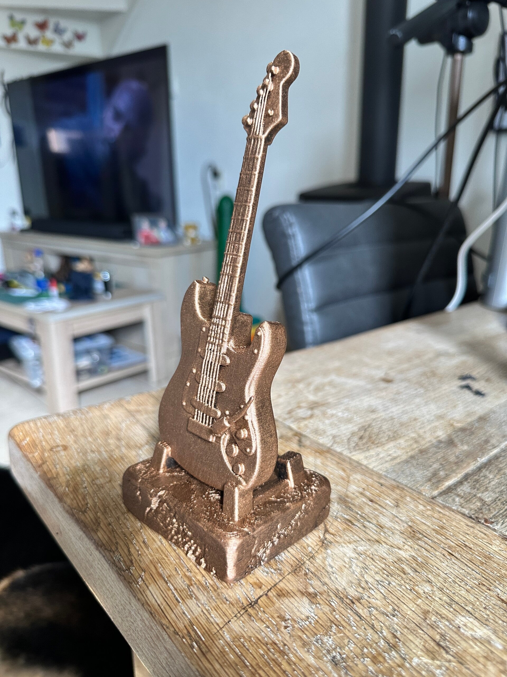 Nieuw bij DDD muziek instrumenten de tweede is een gitaar Op de sokkel kan ik personaliseren. Neem contact met mij op als je een kado door mij wil laten maken aub