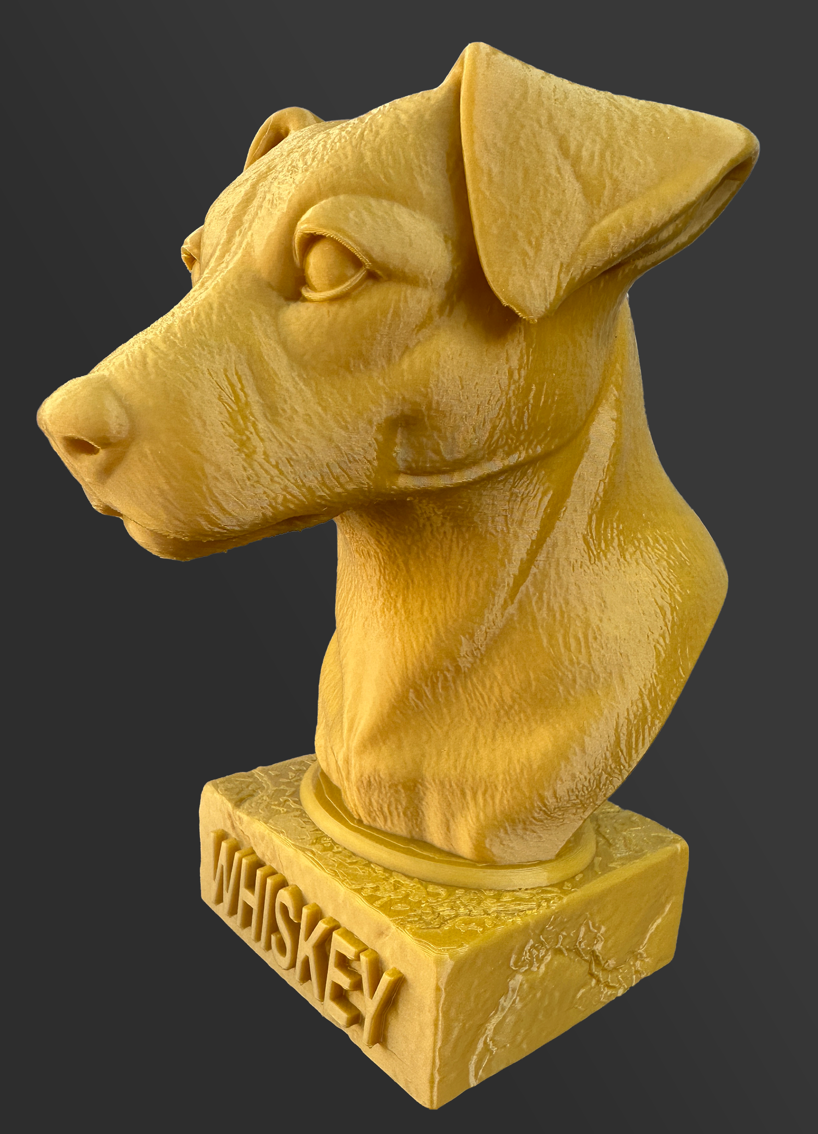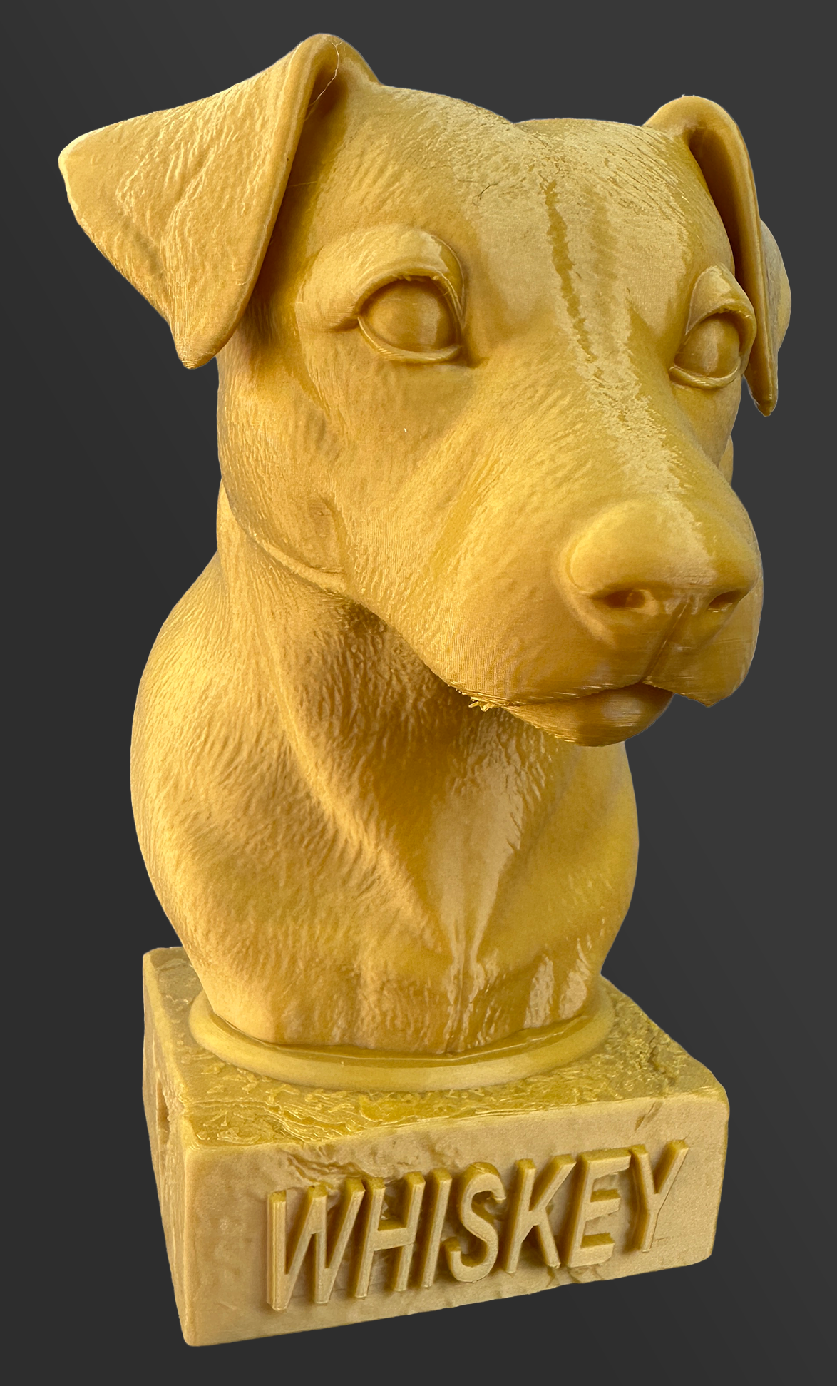 Voorbeeld van een gouden gepersonaliseerd beeldje van een Jack Russel. Whiskey is overleden en dit is een herinnering voor de eigenaar. Kies afwerking wit als u zelf gaat verven.