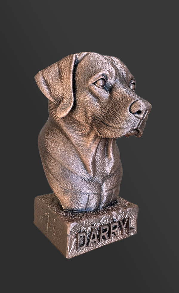 Kunststof beeldje van een labrador retriever. Heel gedetailleerd. hoogte 15 cm. gepersonaliseerd met naam maar dat kan met al de beeldjes. Heel leuk om te krijgen of te geven.