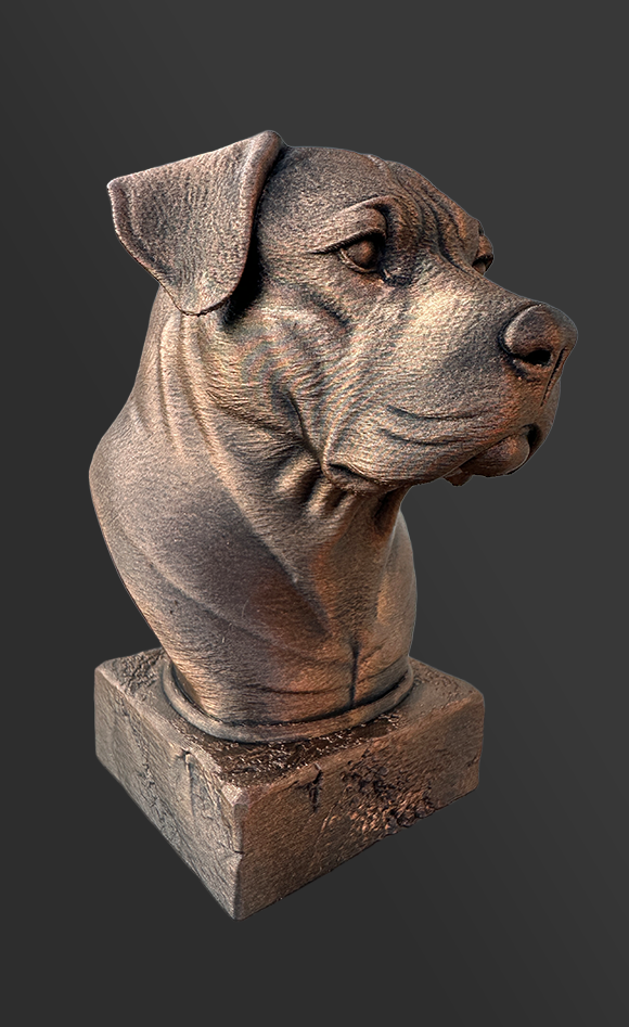 Kunststof gebronsd beeldje van een Argentijnse dog 15 cm hoog. Heel mooi gedetailleerd Kan ook met naam op de voet gepersonaliseerd worden. Elk beeld wordt met zorg en aandacht individueel vervaardigd. Kleine variaties in oppervlak horen bij het ambachtelijke karakter en maken ieder exemplaar uniek.