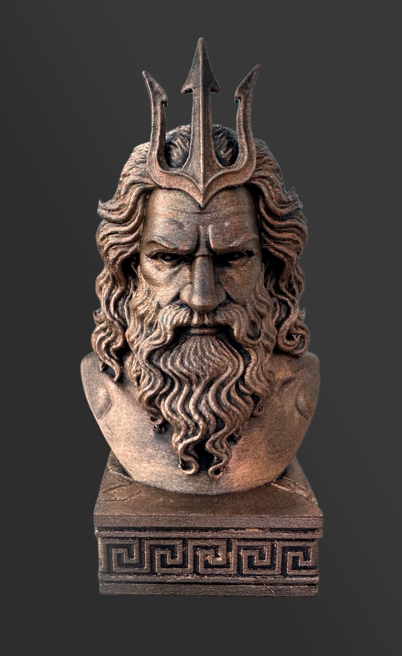 Kunststof gebronsd beeldje van de Griekse God Poseidon 15 cm hoog. Heel mooi gedetailleerd Kan ook met naam op de voet gepersonaliseerd worden. Elk beeld wordt met zorg en aandacht individueel vervaardigd. Kleine variaties in oppervlak horen bij het ambachtelijke karakter en maken ieder exemplaar uniek.