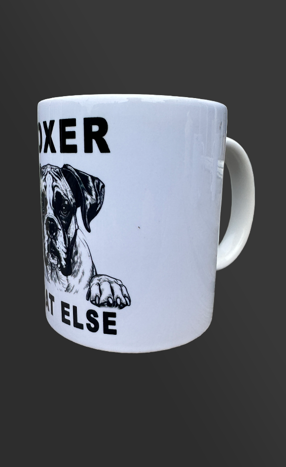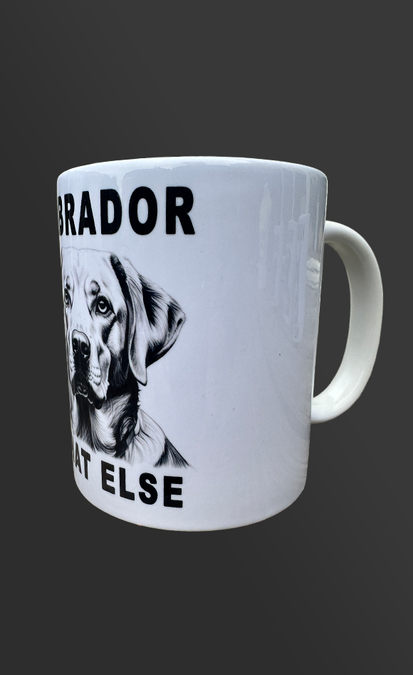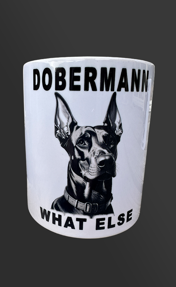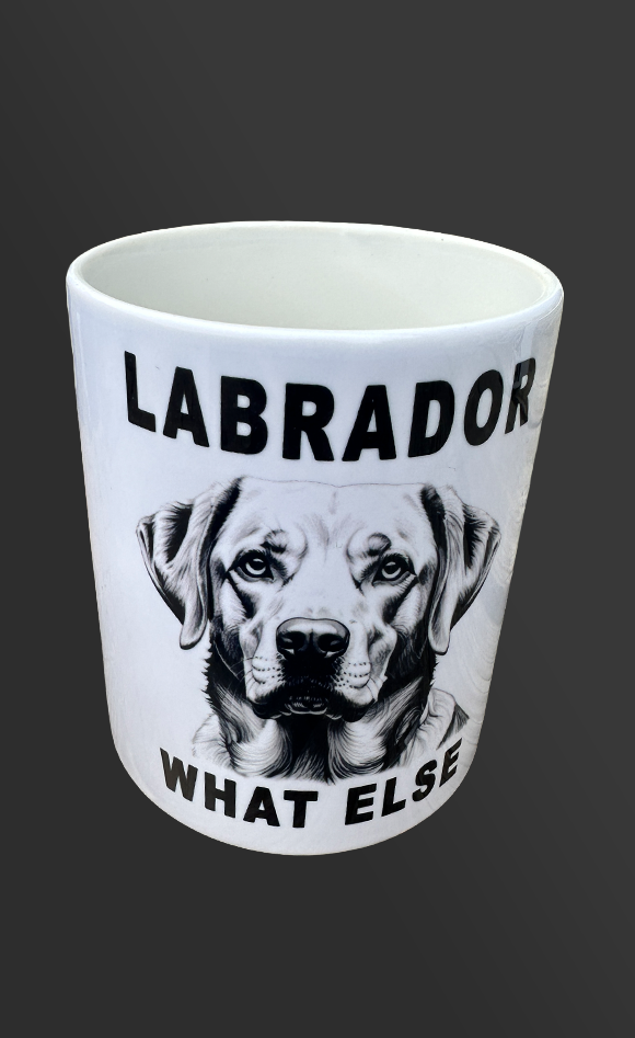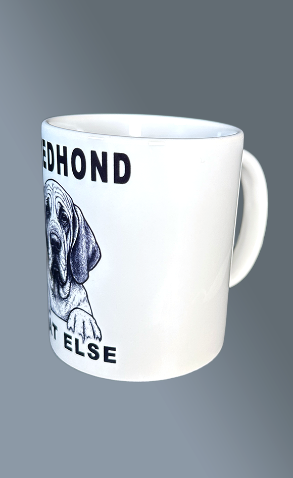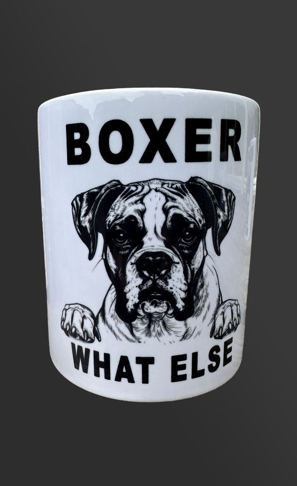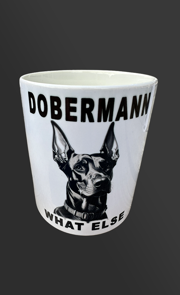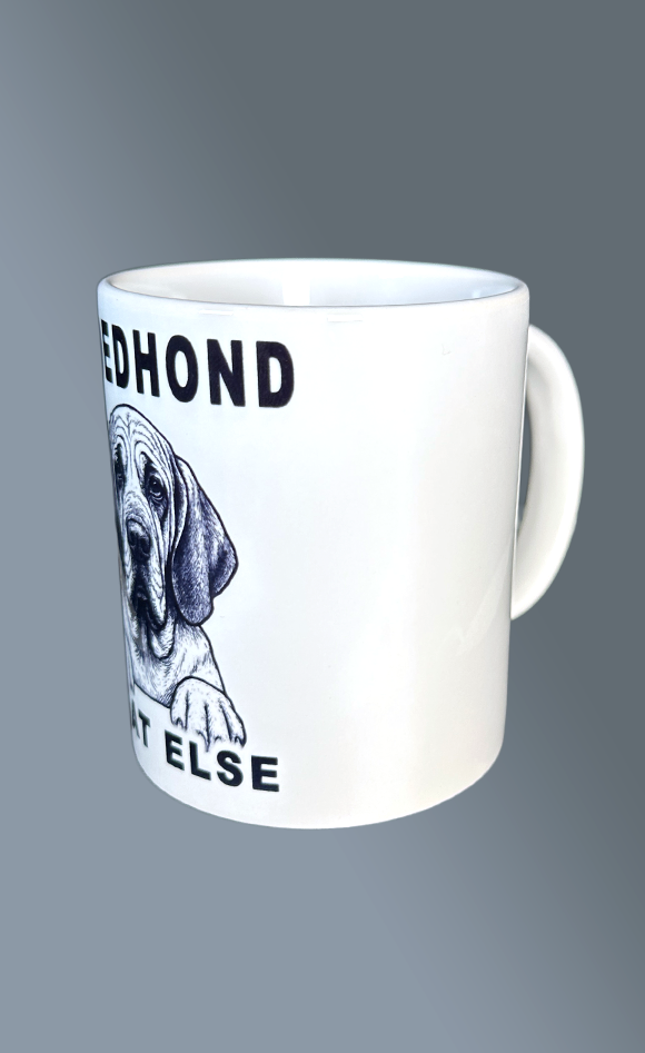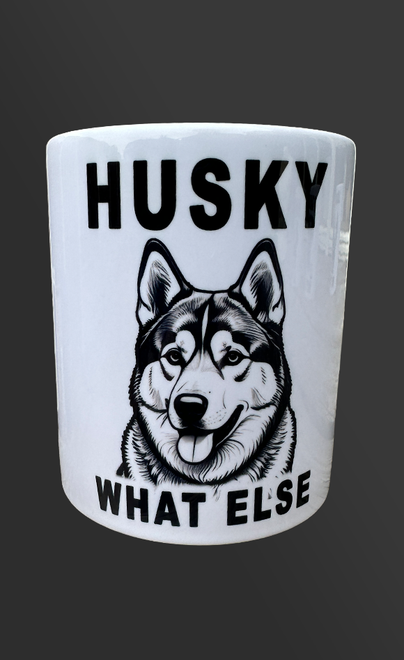 Vaatwasbestendige keramische beker met zwarte opdruk.