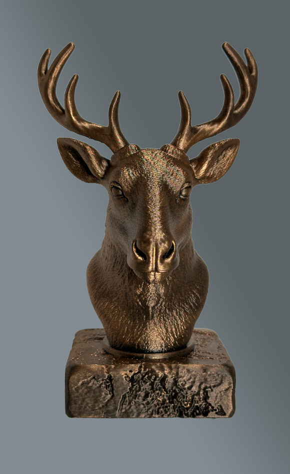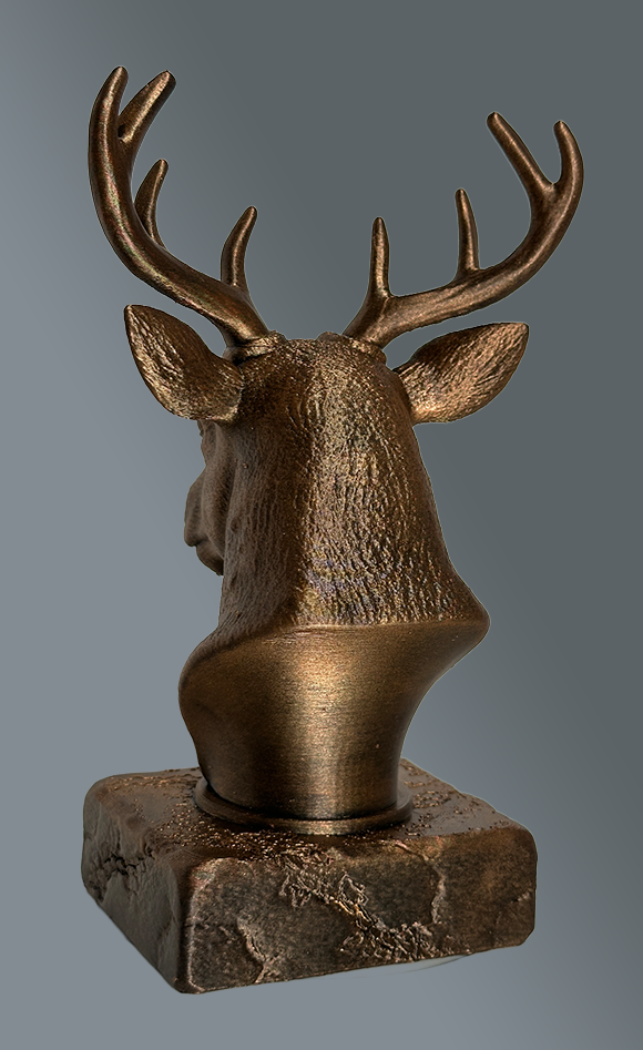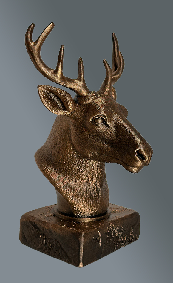 Kunststof gebronsd beeldje van een Rendier met prachtig gewei 15 cm hoog. Heel mooi gedetailleerd Gebronsd. Maar kan ook zilver of steen look. Zelfs wit als je zelf wilt kleuren. Kan ook met naam op de voet gepersonaliseerd worden.