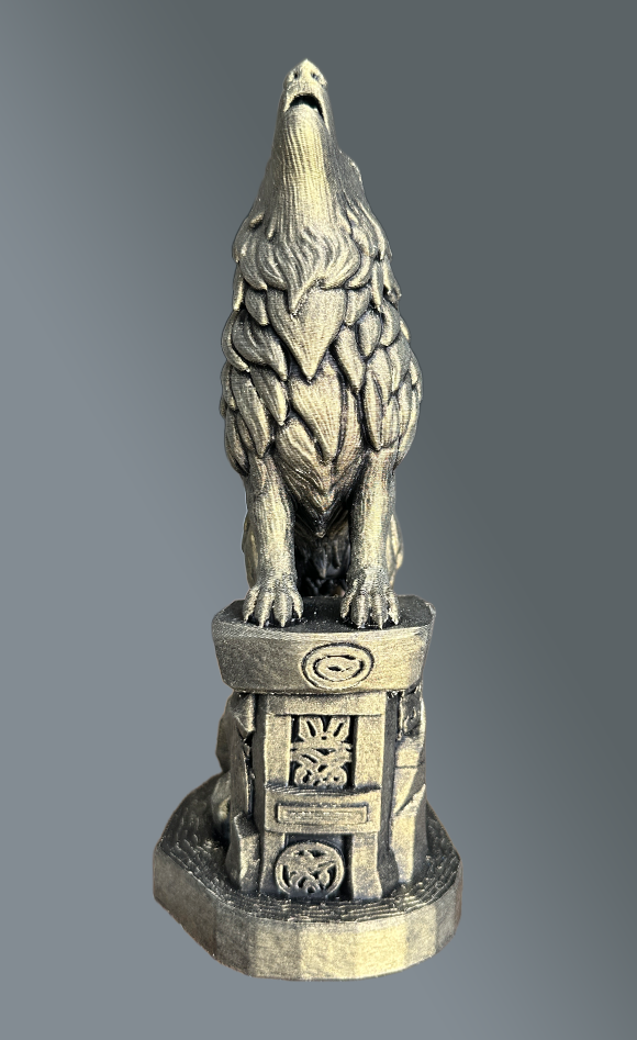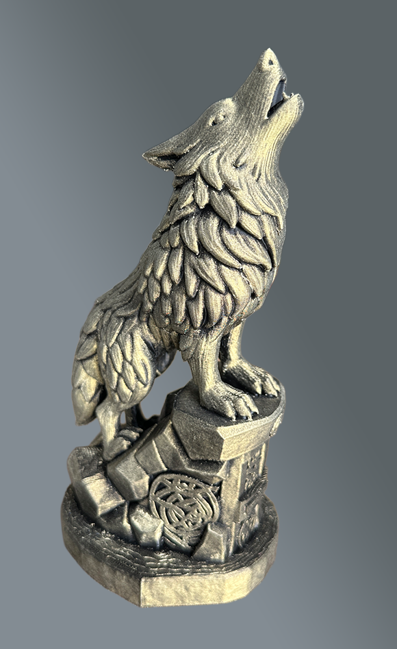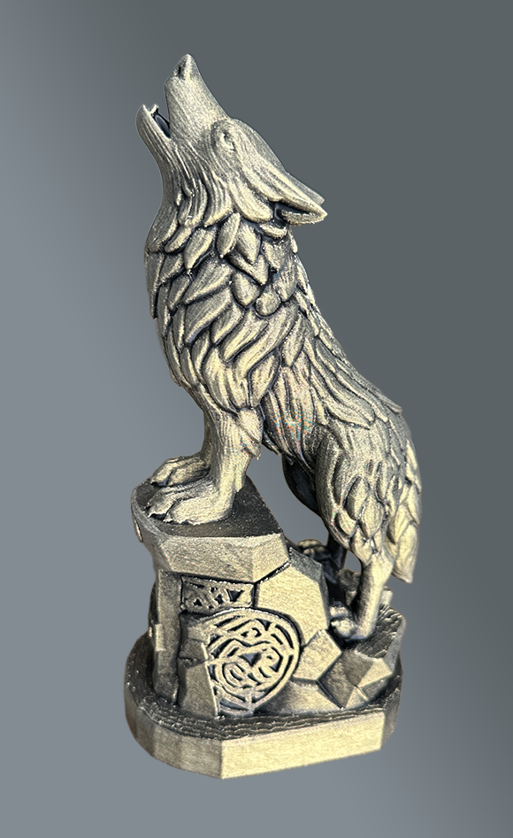 Prachtig gedetailleerd beeldje van de Huilende Wolf Nieuwe afwerking uit geprobeerd. Valt onder Goudkleurig, nooit eerder gezien.