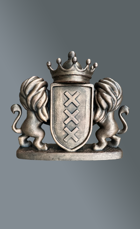 Wapen van Amsterdam in cartoon stijl 15 of 20 cm hoog, gebronsd. Super leuk om te geven of te krijgen