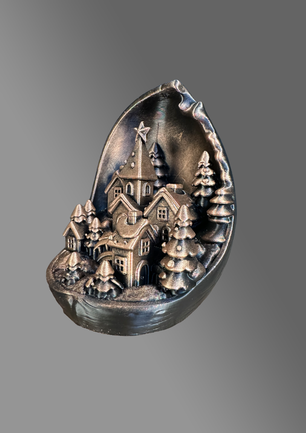 Klein KerstDorp in een ei leuk gebronsd cadeau
