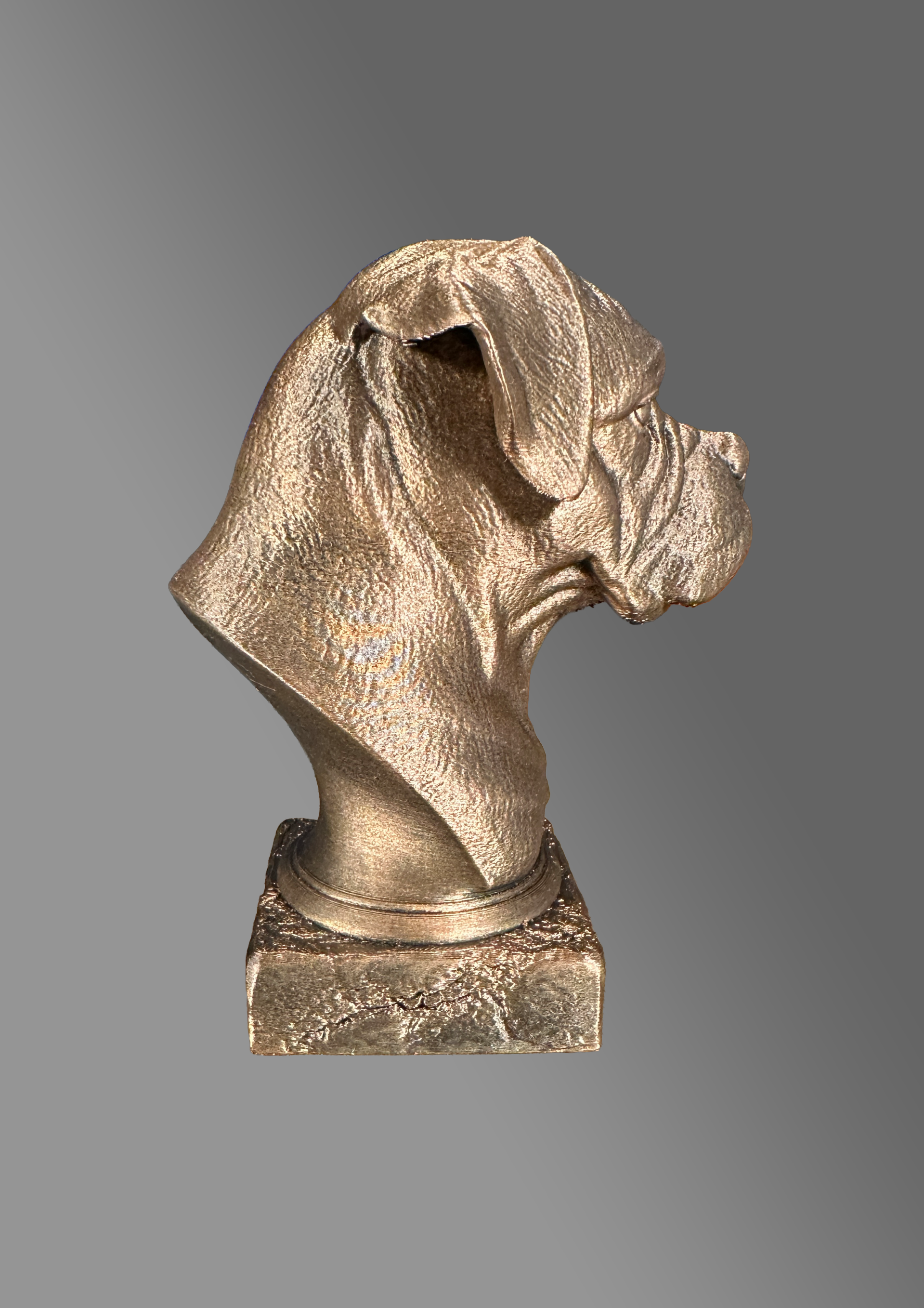Prachtig gedetailleer d beeldje van de Boxer 15 cm hoog met de hand gebronsd.